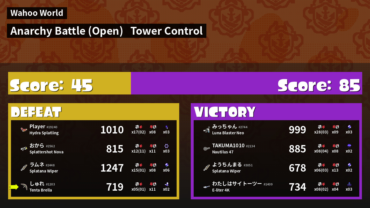 | Mode | Tower Control - Anarchy Battle (Open) | ||