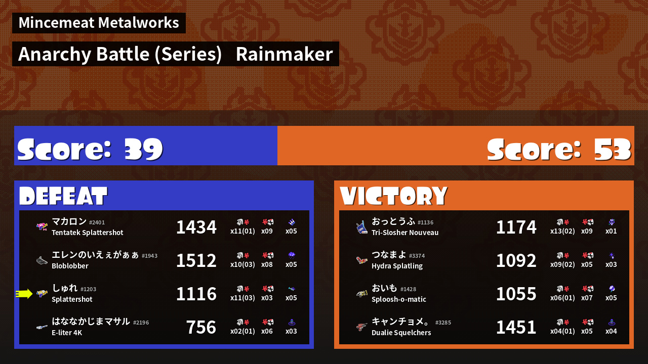 | Medals | #1 Overall Splatter #1 Splat Assister #1 Rainmaker Stopper | ||
