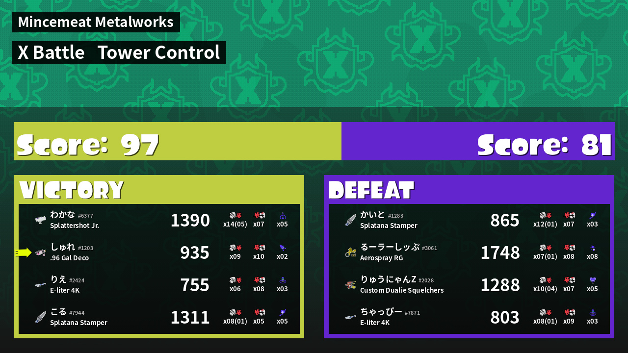 | Mode | Tower Control - X Battle | ||
