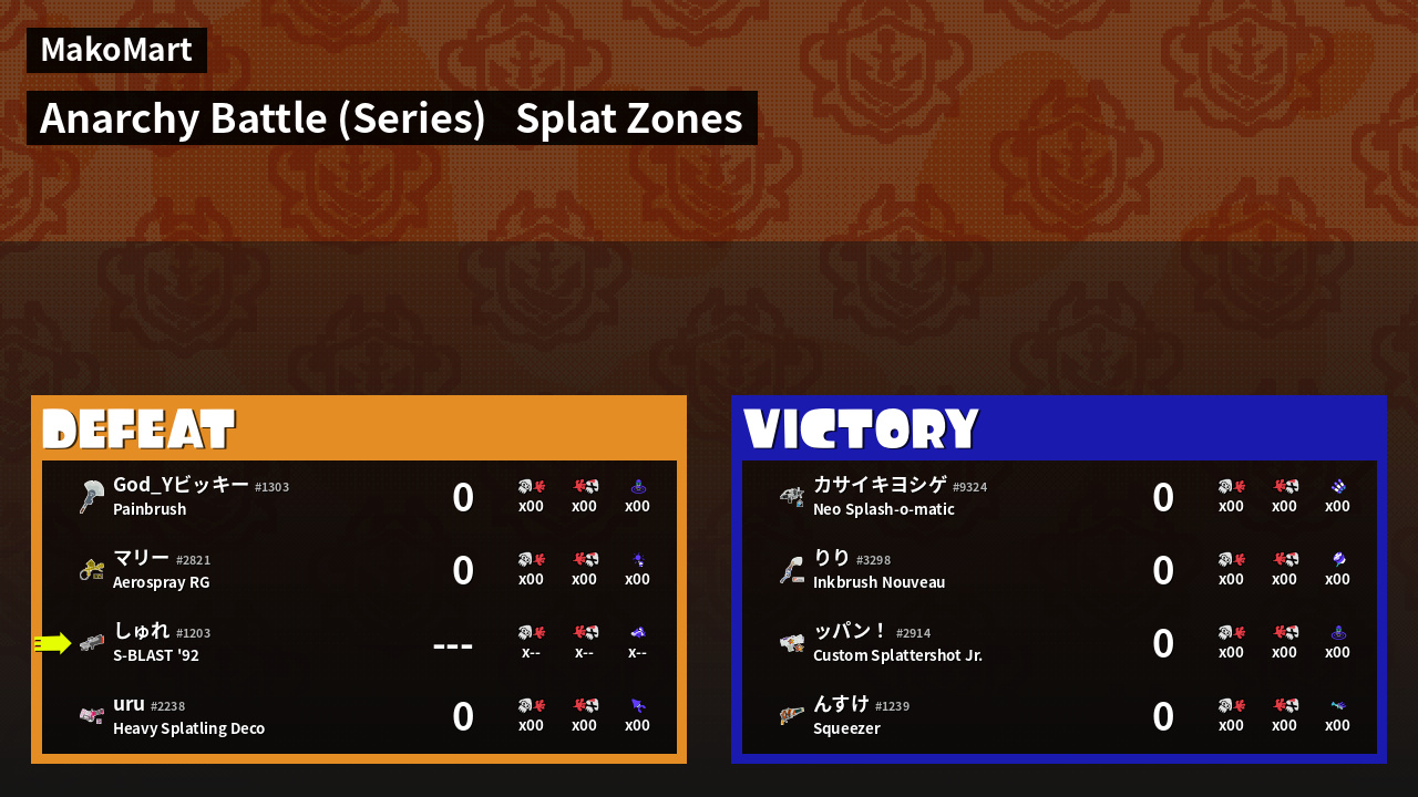 | Mode | Splat Zones - Anarchy Battle (Series) | ||