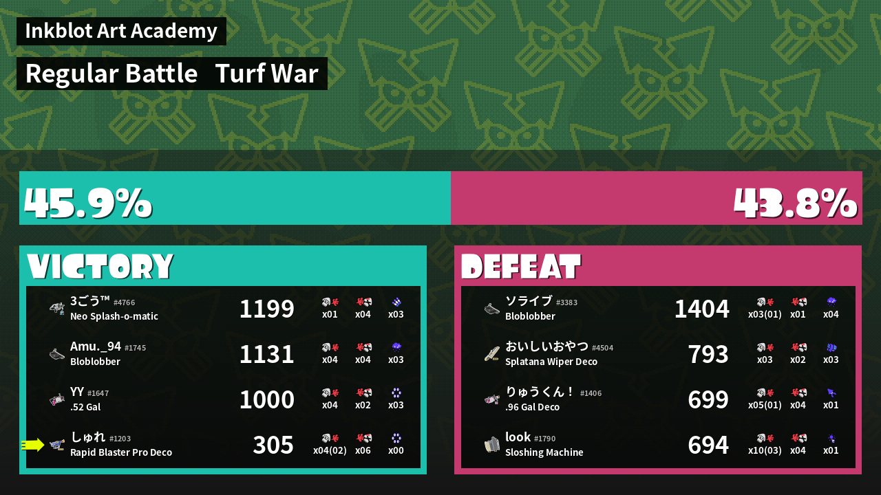 | Mode | Turf War - Regular Battle | ||