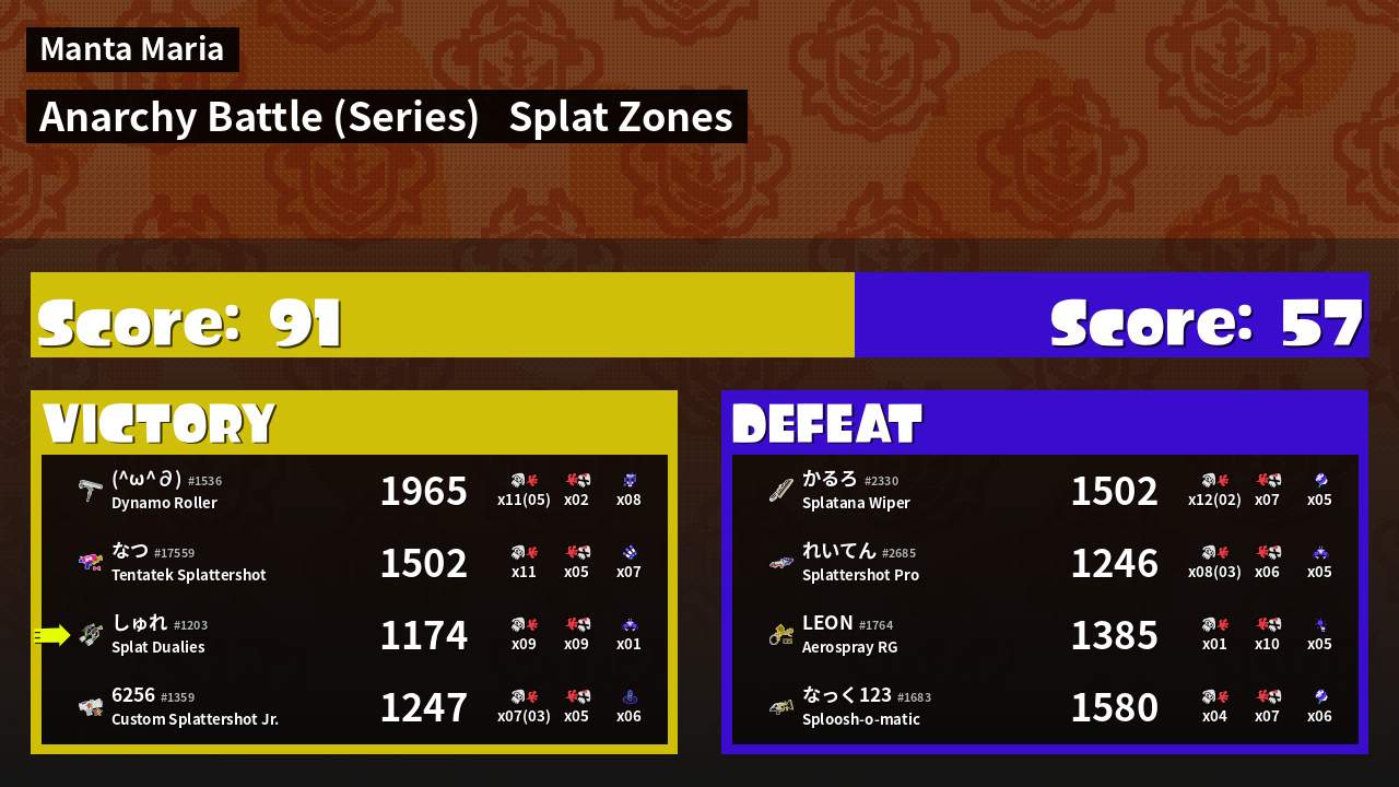 | Mode | Splat Zones - Anarchy Battle (Series) | ||