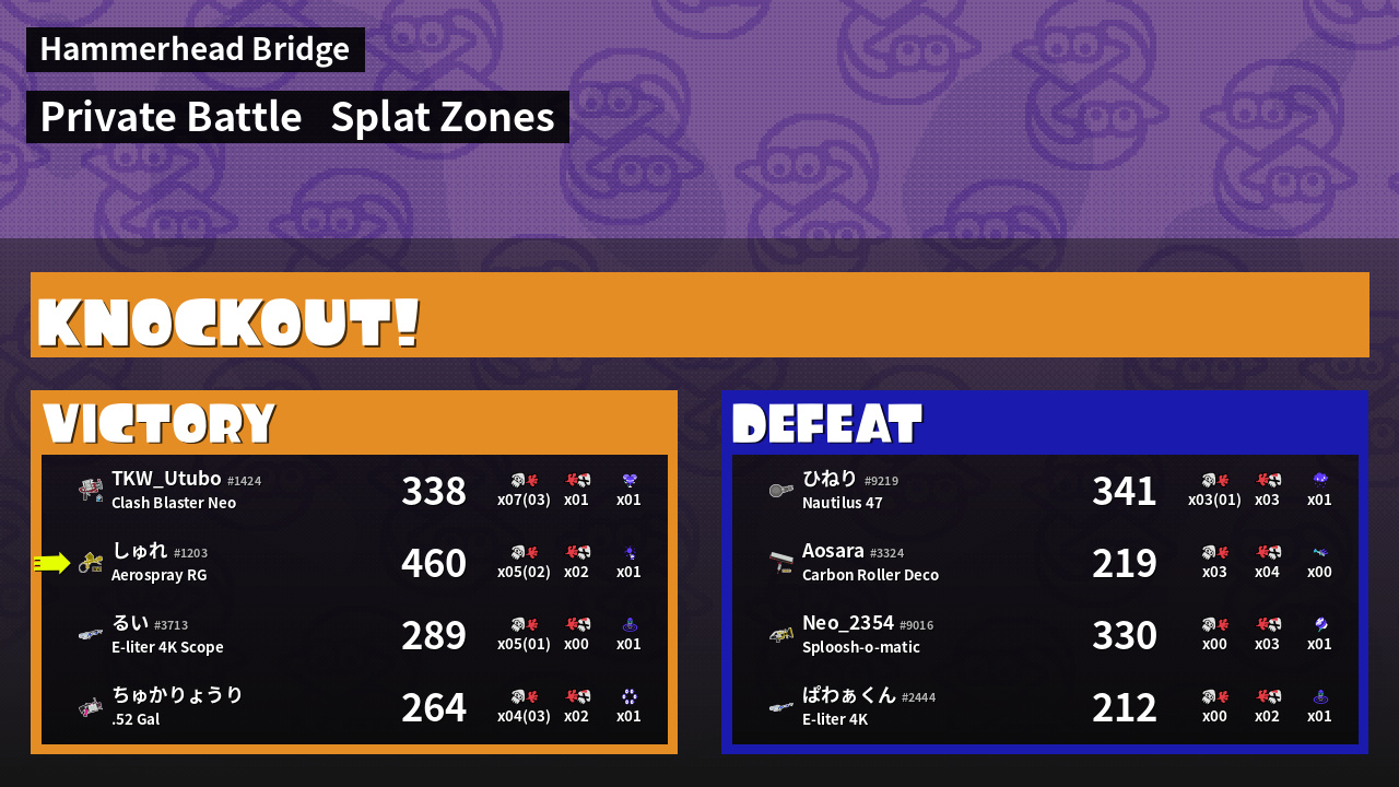 | Mode | Splat Zones - Private Battle | ||