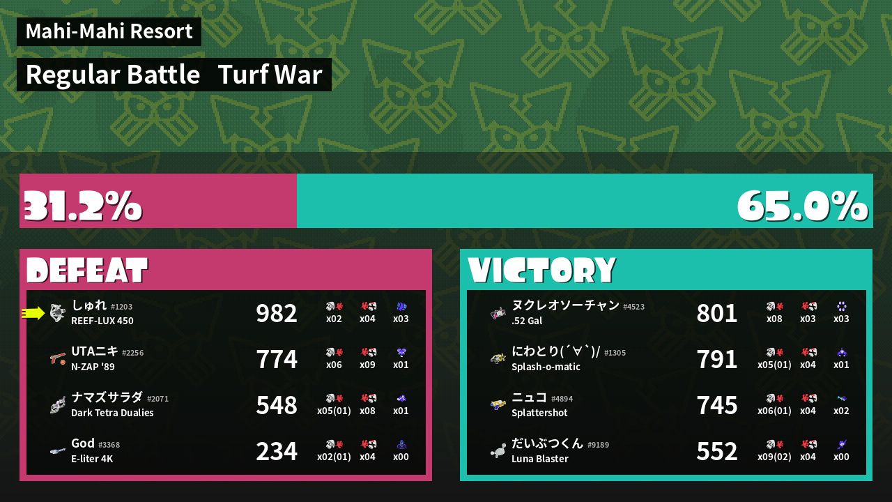 | Mode | Turf War - Regular Battle | ||