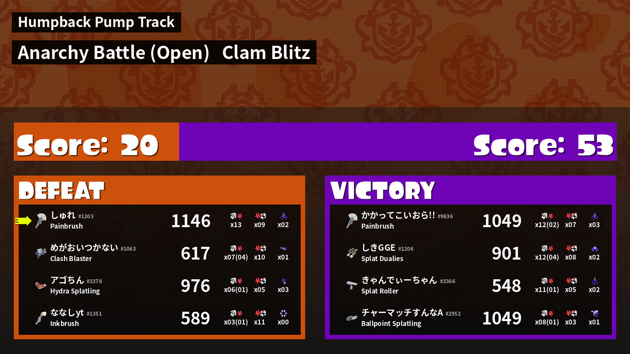 | Mode | Clam Blitz - Anarchy Battle (Open) | ||