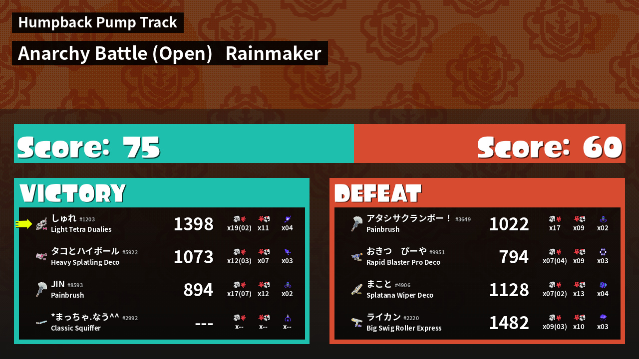 | Mode | Rainmaker - Anarchy Battle (Open) | ||