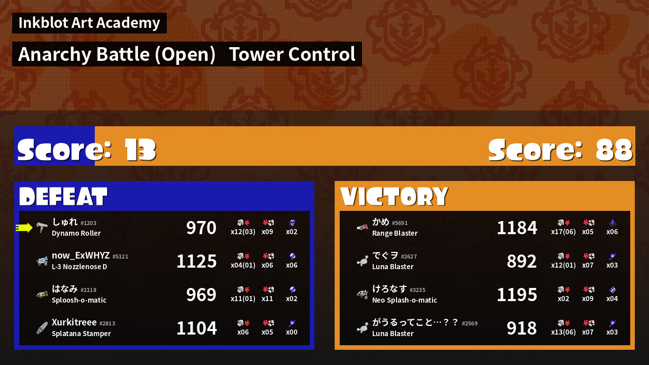 | Mode | Tower Control - Anarchy Battle (Open) | ||