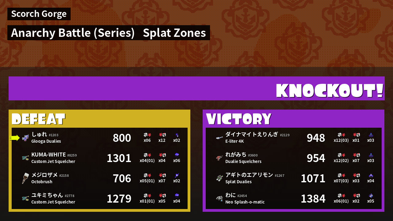 | Medals | #1 Overall Splatter #1 Splat Zone Guard #1 Enemy Splatter | ||