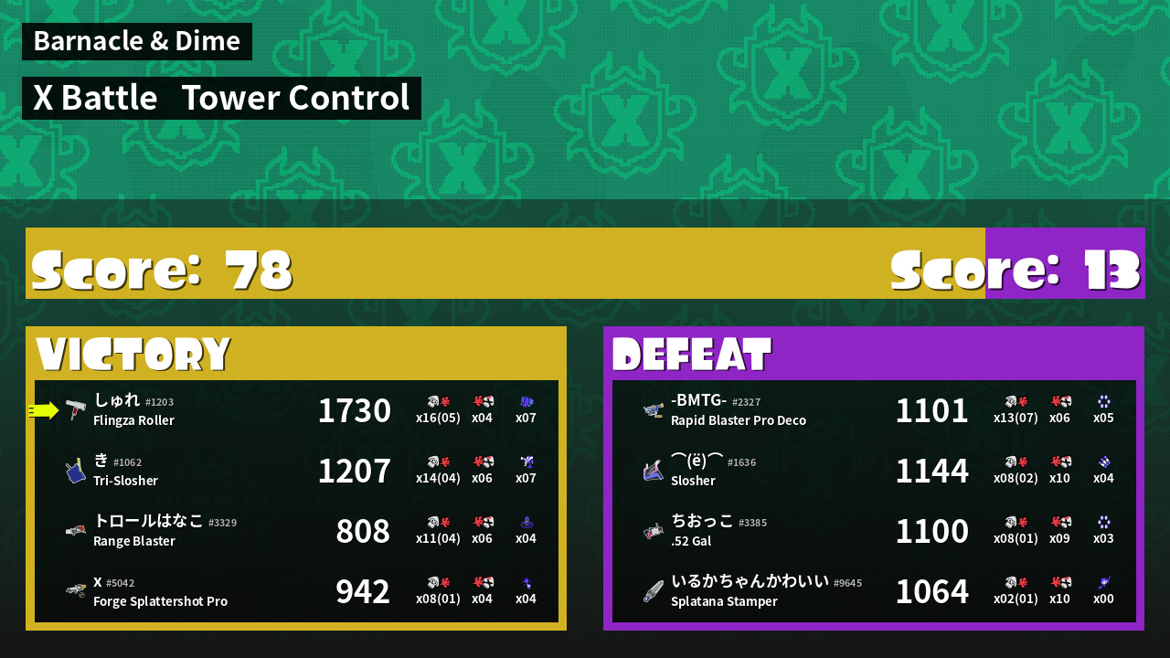 | Mode | Tower Control - X Battle | ||
