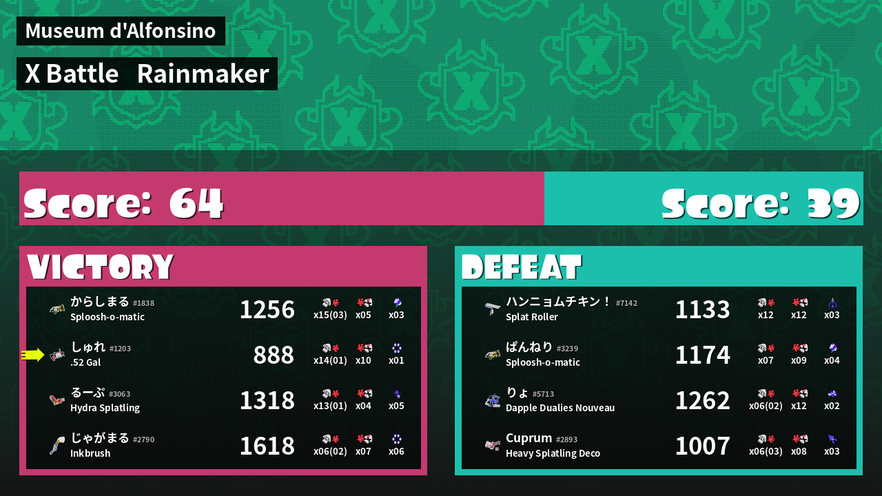 | Medals | #1 Enemy Splatter #1 Rainmaker Stopper #2 Overall Splatter | ||