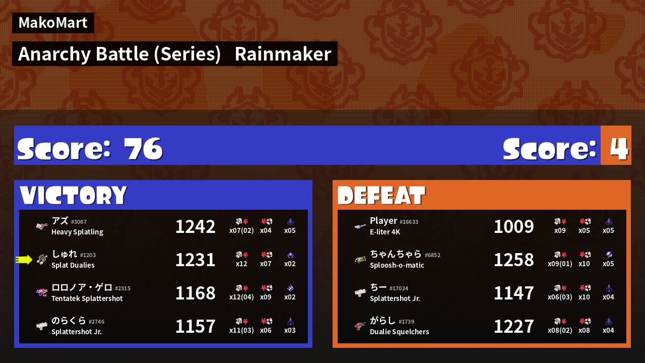 | Mode | Rainmaker - Anarchy Battle (Series) | ||