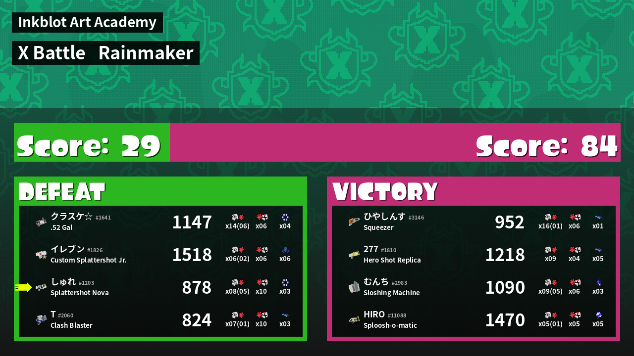 | Weapon | Splattershot Nova ( Point Sensor / Killer Wail 5.1) | ||