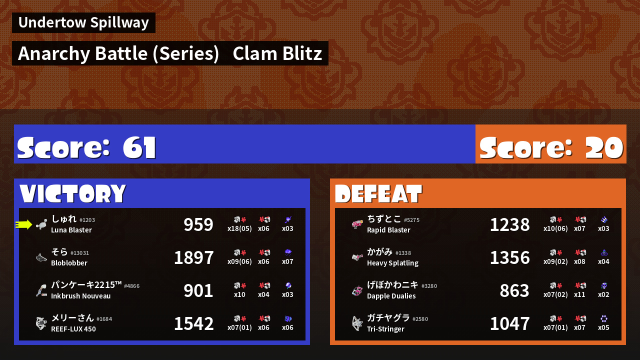 | Mode | Clam Blitz - Anarchy Battle (Series) | ||