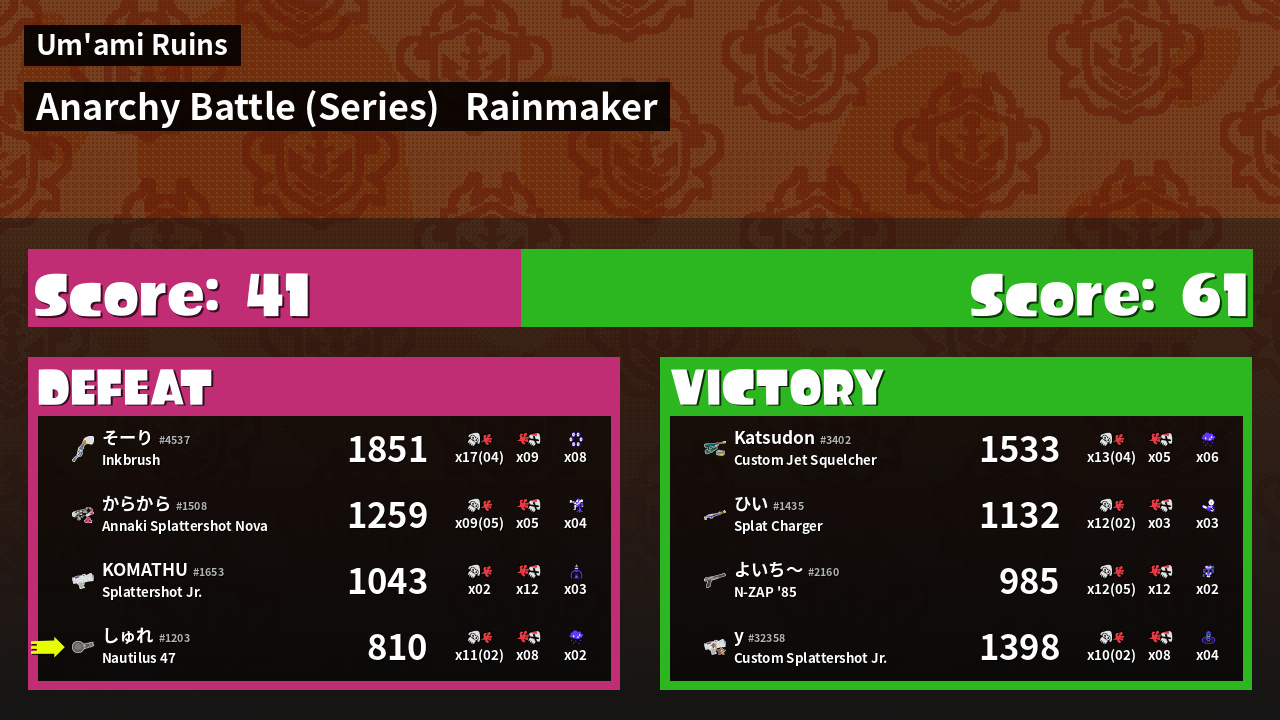 | Mode | Rainmaker - Anarchy Battle (Series) | ||