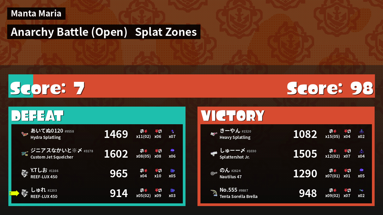 | Mode | Splat Zones - Anarchy Battle (Open) | ||