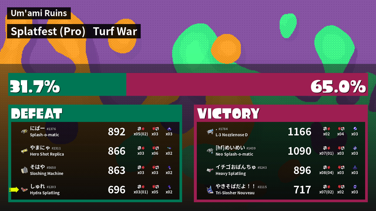 | Mode | Turf War - Splatfest (Pro) | ||