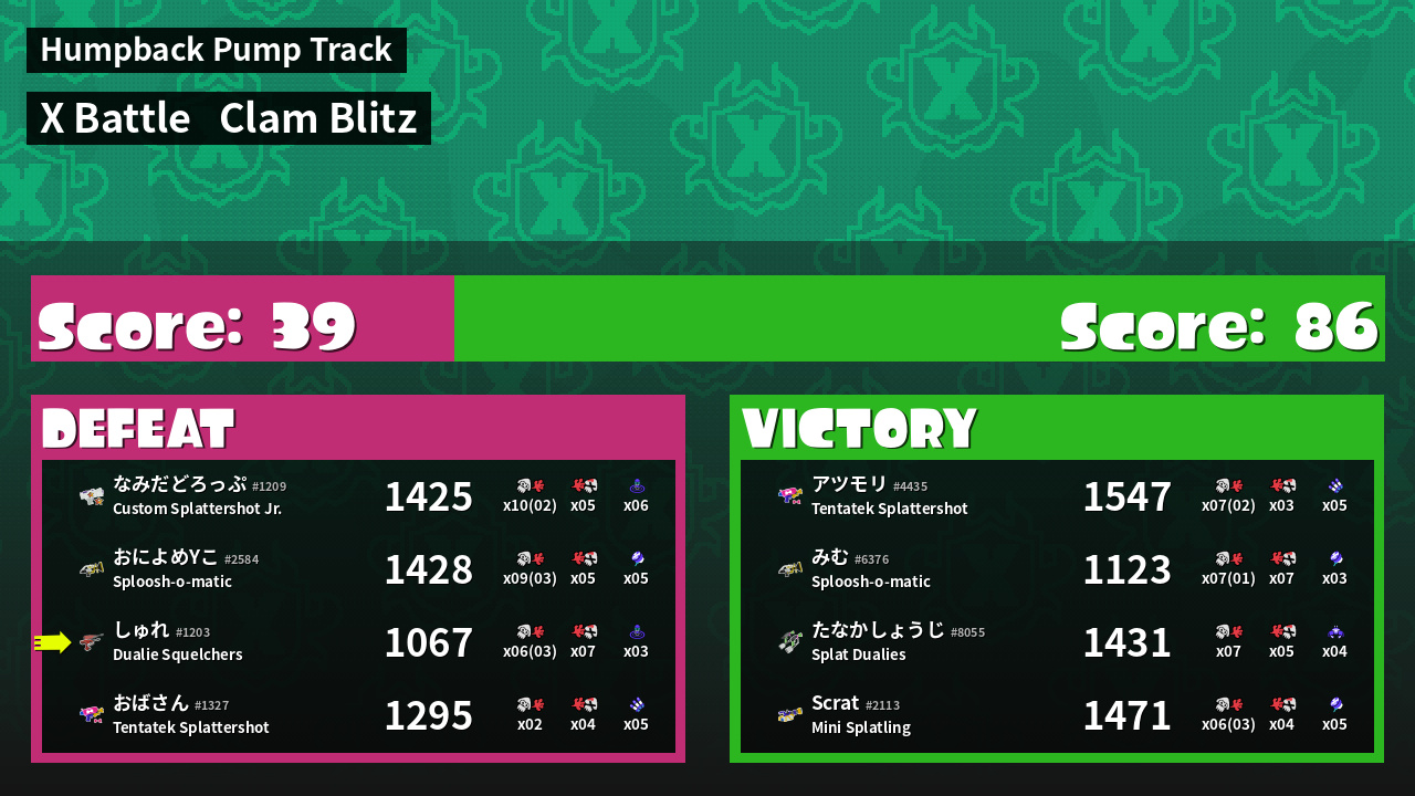 | Medals | #1 Splat Assister #2 Clam Carrier #2 Super Jump Spot | ||
