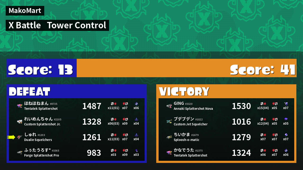 | Medals | #1 Overall Splatter #1 Splat Assister #1 Tower Stopper | ||