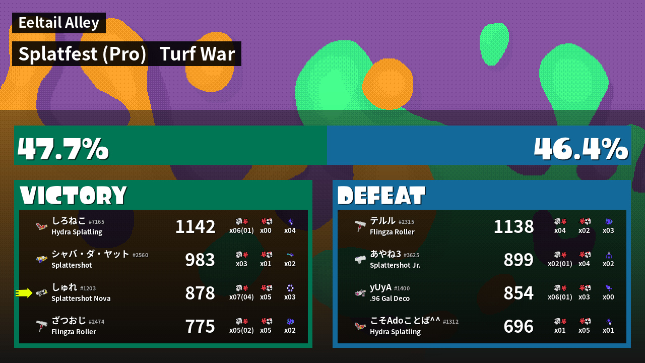 | Medals | #1 Overall Splatter #1 Splat Assister #1 Ground Traveler | ||
