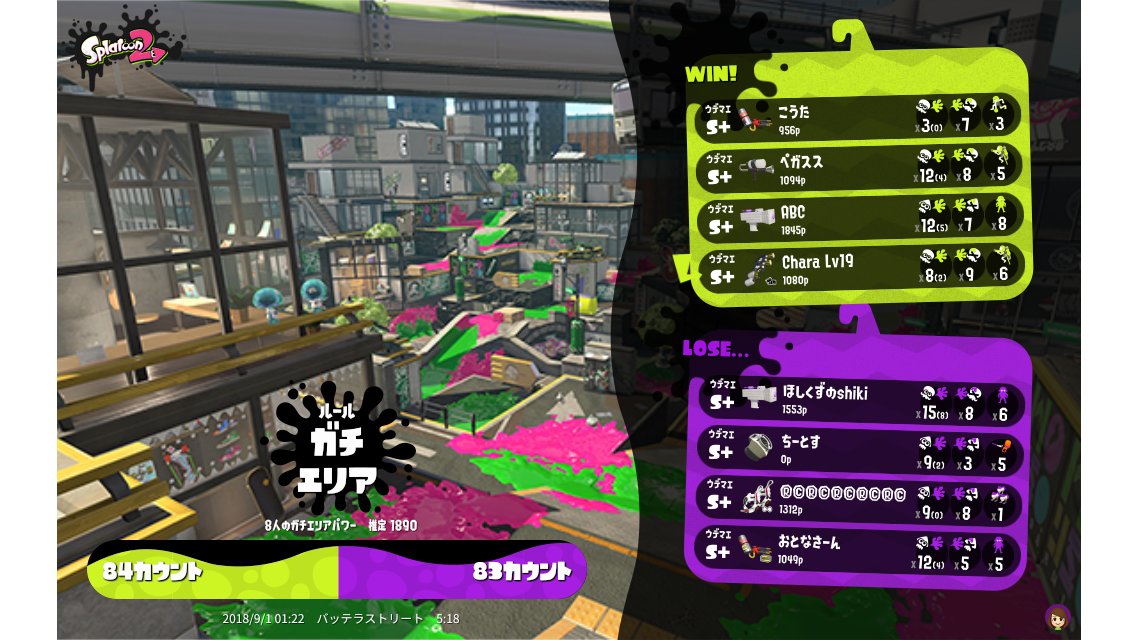 | Mode | Splat Zones - Ranked Battle | ||||||||||||||||||||||||||||||||||