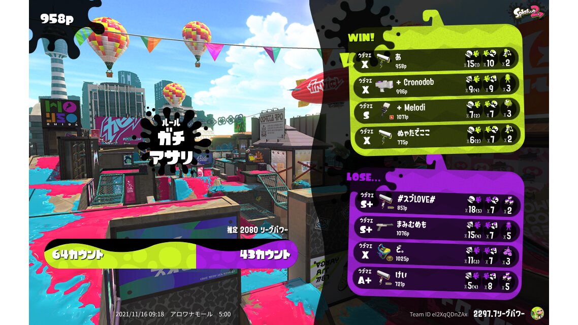 | Mode | Clam Blitz - League Battle (Twin) | ||||||||||||||||