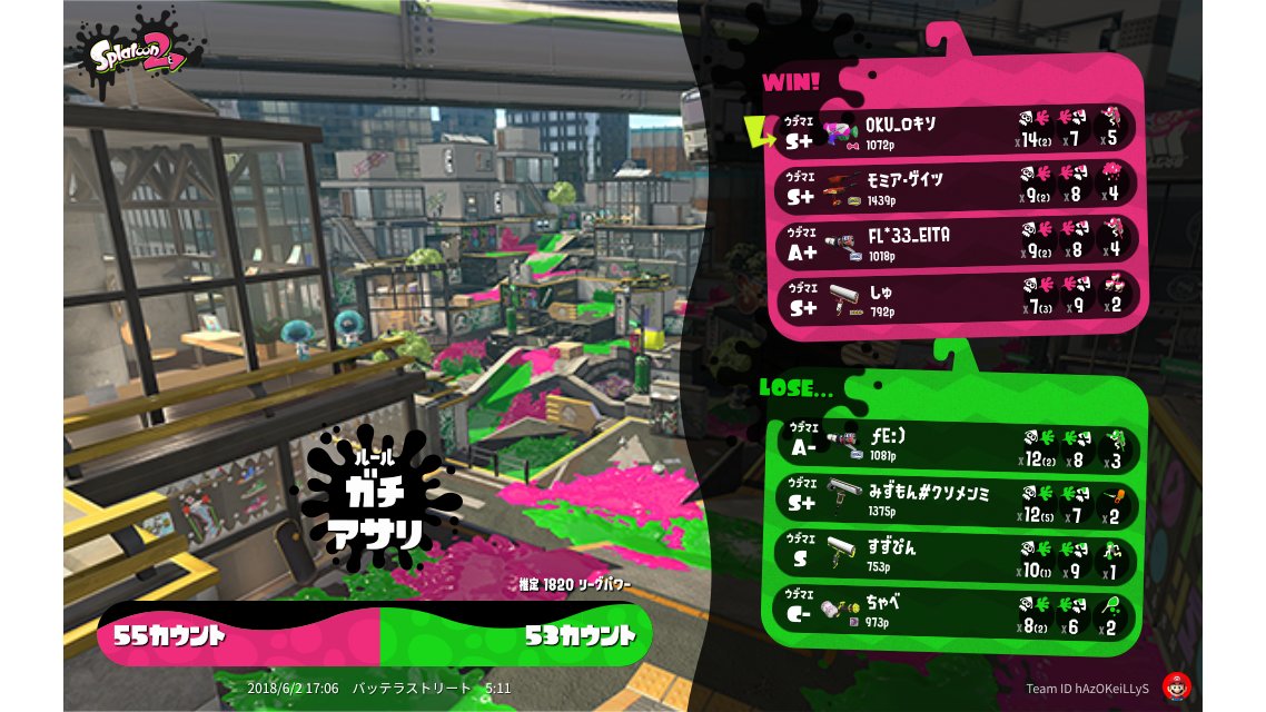 | Name | Weapon | Level | Rank | Inked | k+a/sp | k/d |