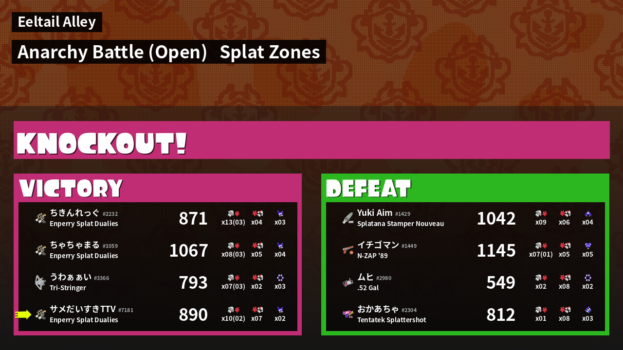 Kills / Deaths | 8 + 2 / 7 > Kill Ratio: 1.14 | ||