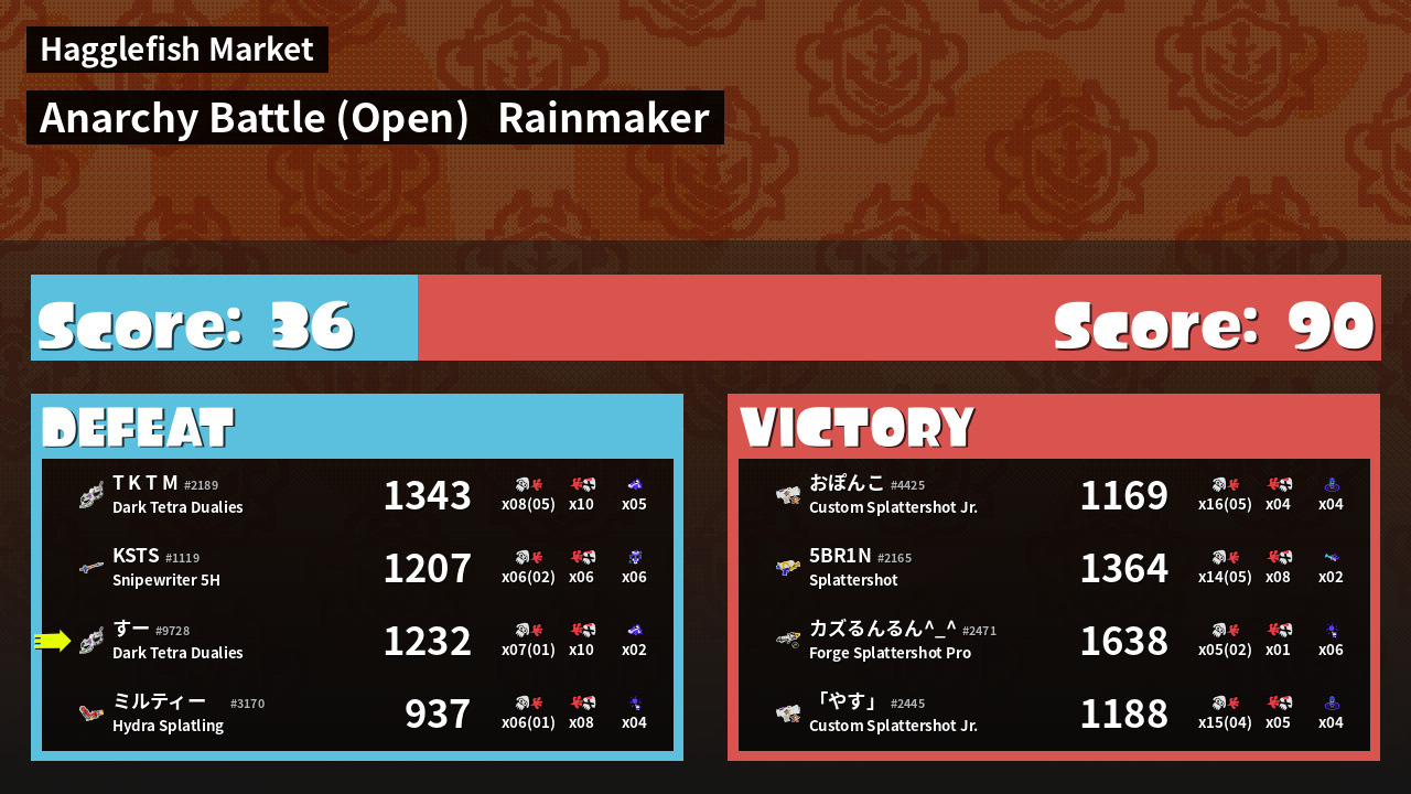 Results of すー's Battle