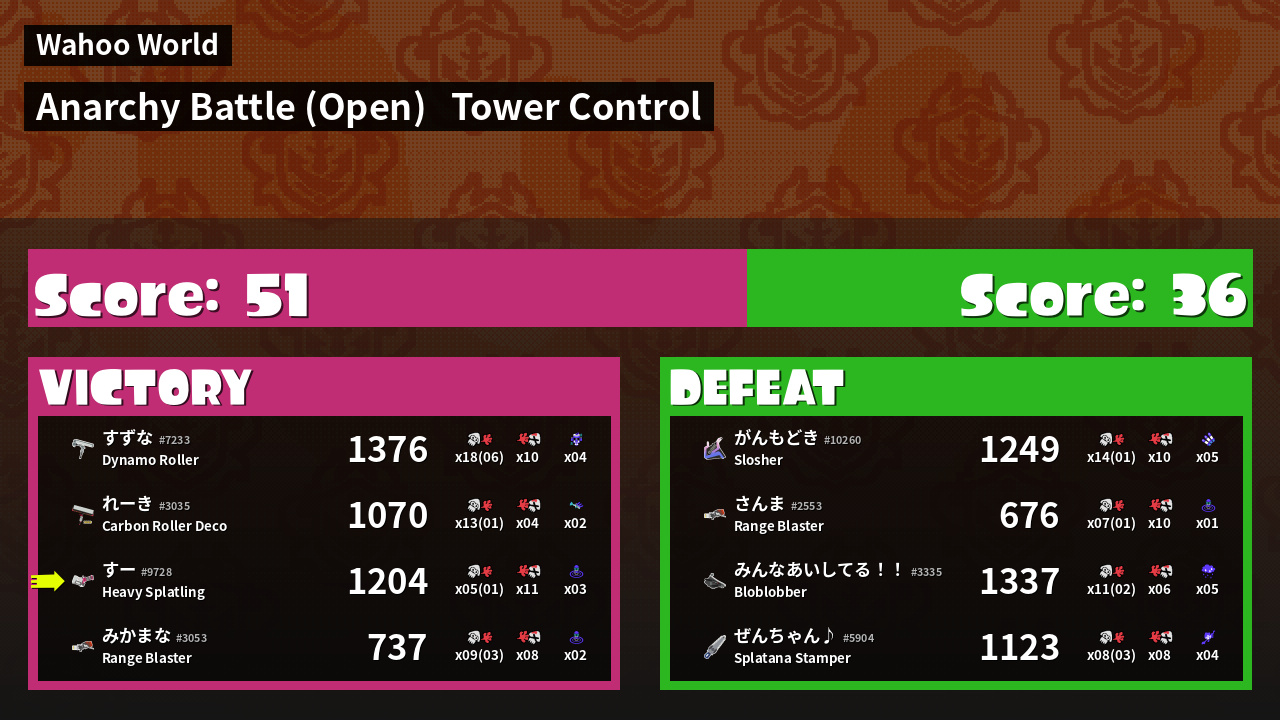 | Mode | Tower Control - Anarchy Battle (Open) | ||