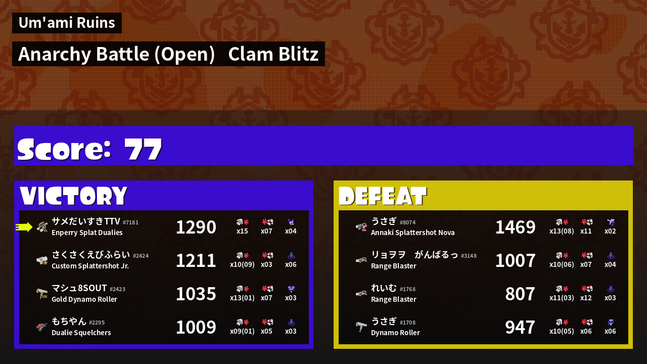 Kills / Deaths | 15 + 0 / 7 > Kill Ratio: 2.14 | ||