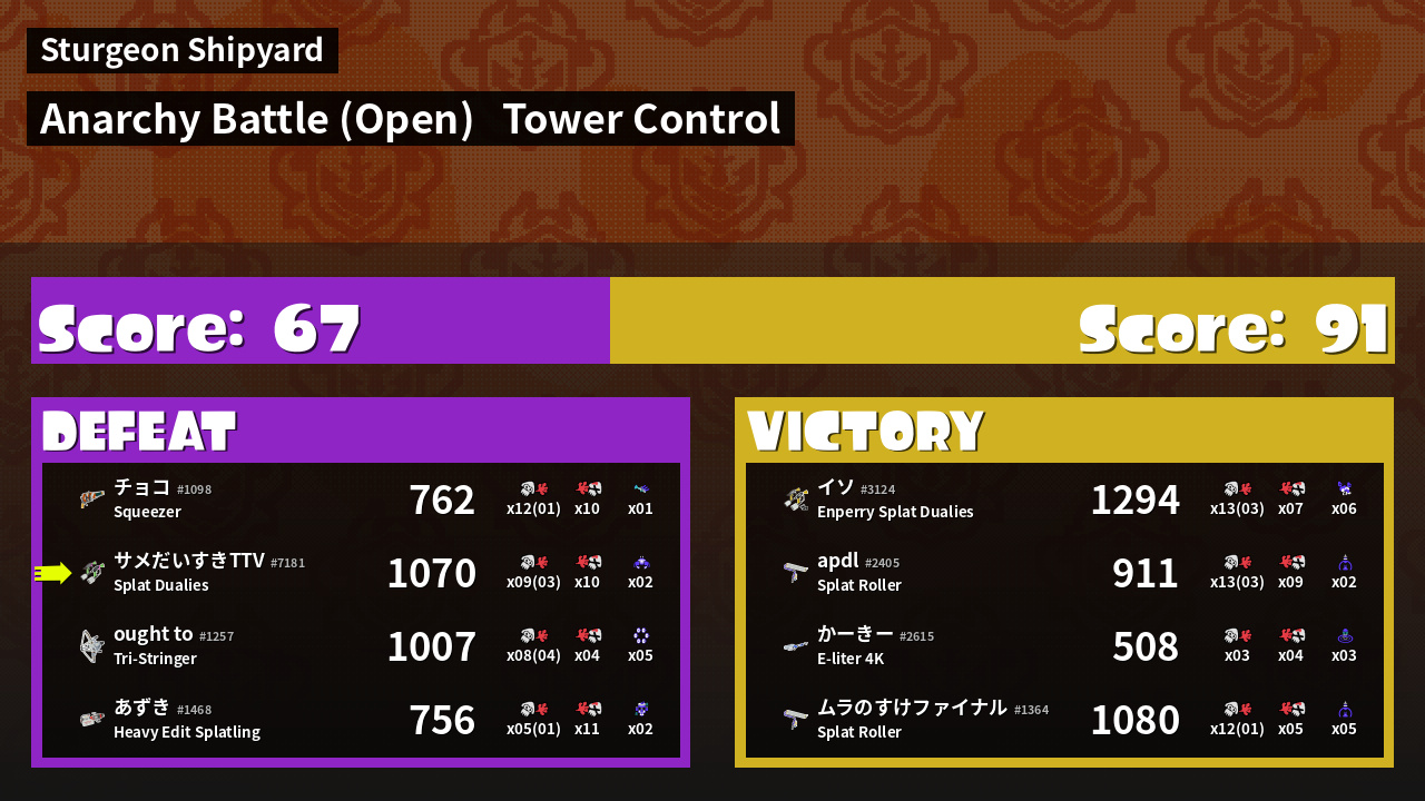 | Mode | Tower Control - Anarchy Battle (Open) | ||