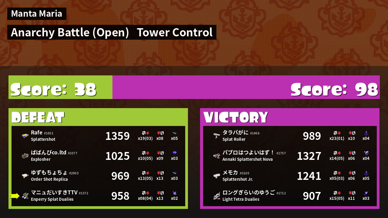 | Mode | Tower Control - Anarchy Battle (Open) | ||
