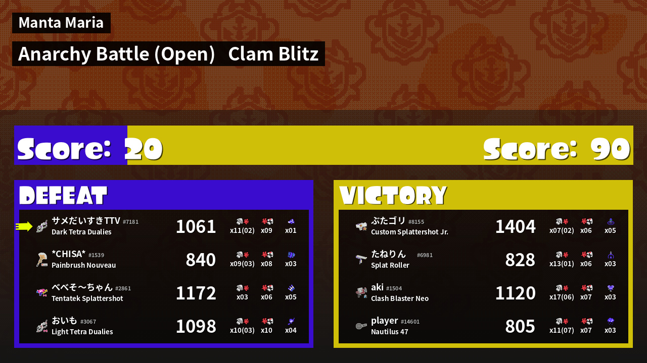 | Mode | Clam Blitz - Anarchy Battle (Open) | ||