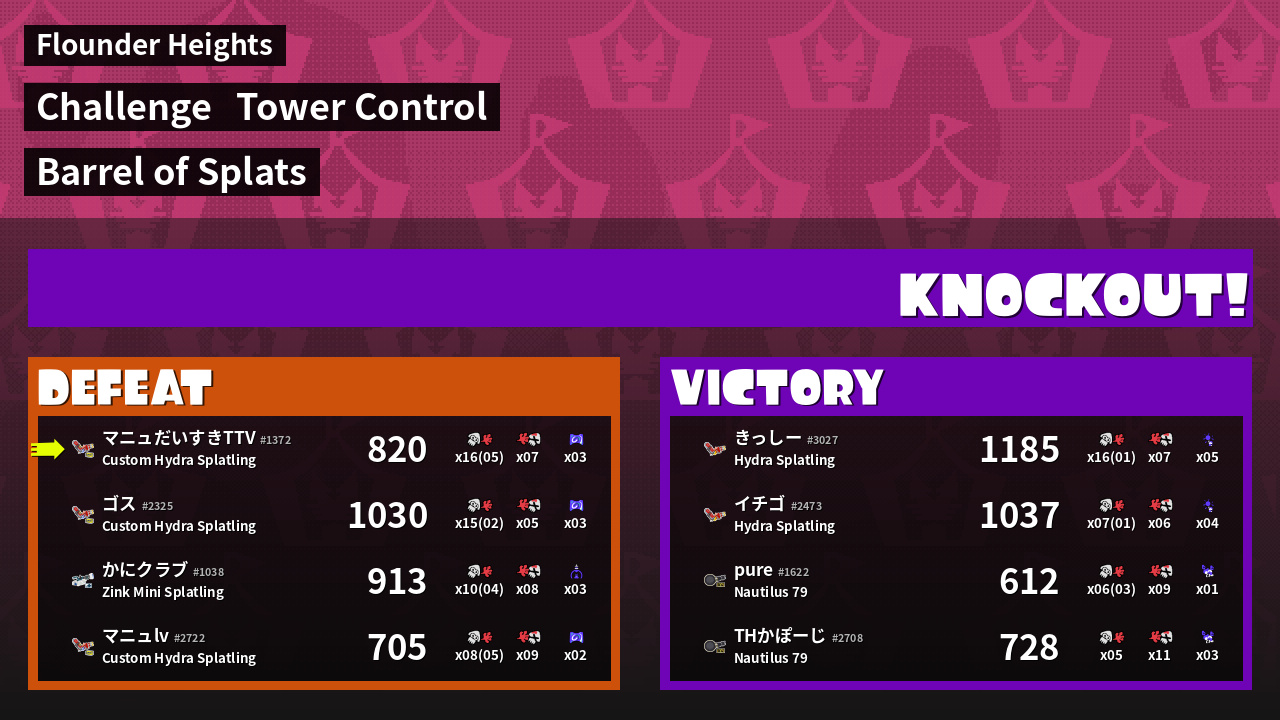 | Challenge | Barrel of Splats Muster as much firepower as you can<br />in this battle of the splatlings! | ||