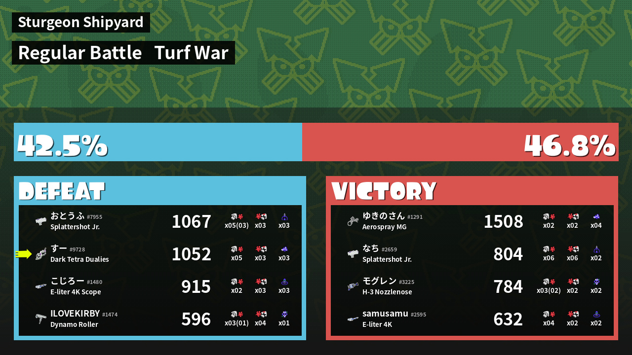 | Medals | #1 Overall Splatter #1 Popular Target #1 Home-Base Inker | ||