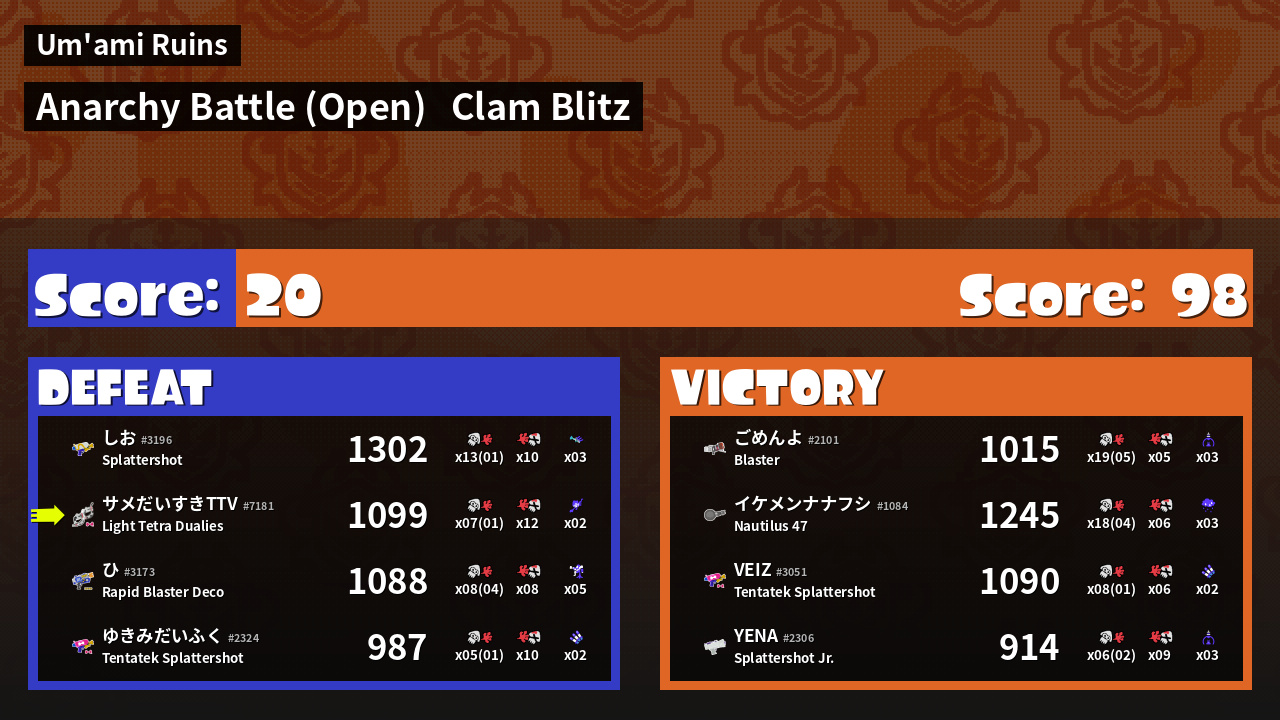Results of すー's Battle