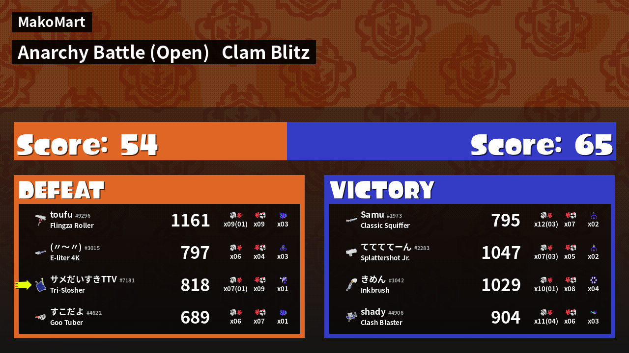 Results of すー's Battle