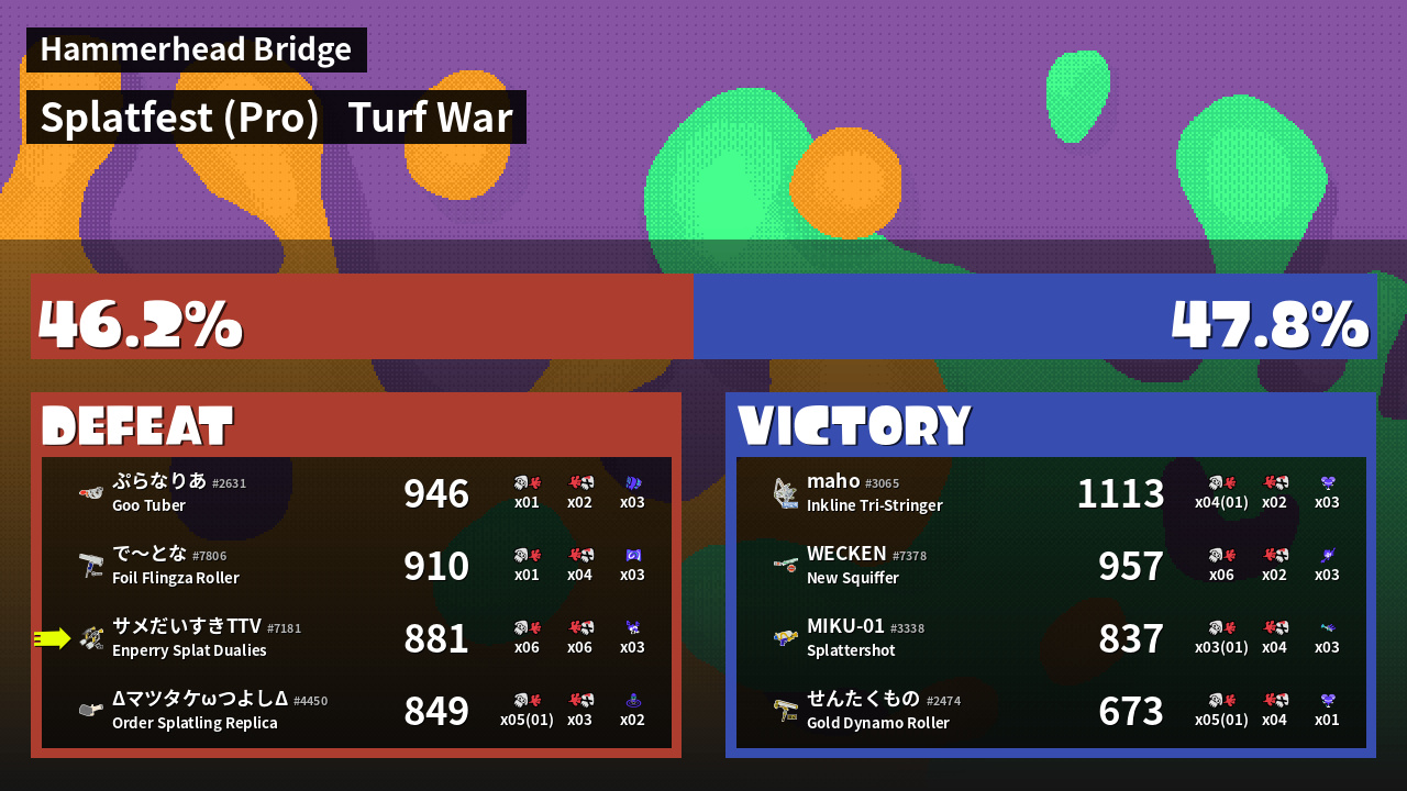 | Mode | Turf War - Splatfest (Pro) | ||
