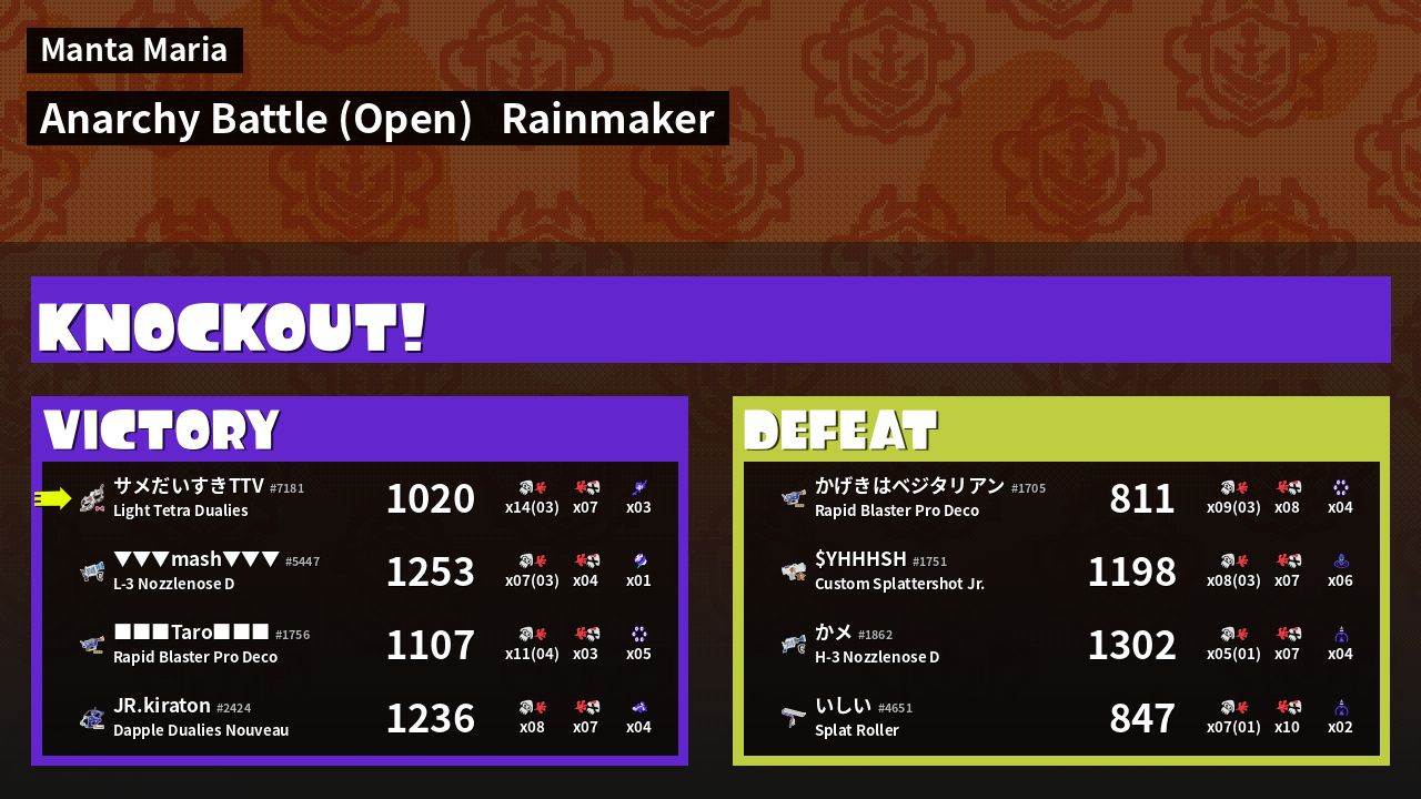 Kills / Deaths | 11 + 3 / 7 > Kill Ratio: 1.57 | ||