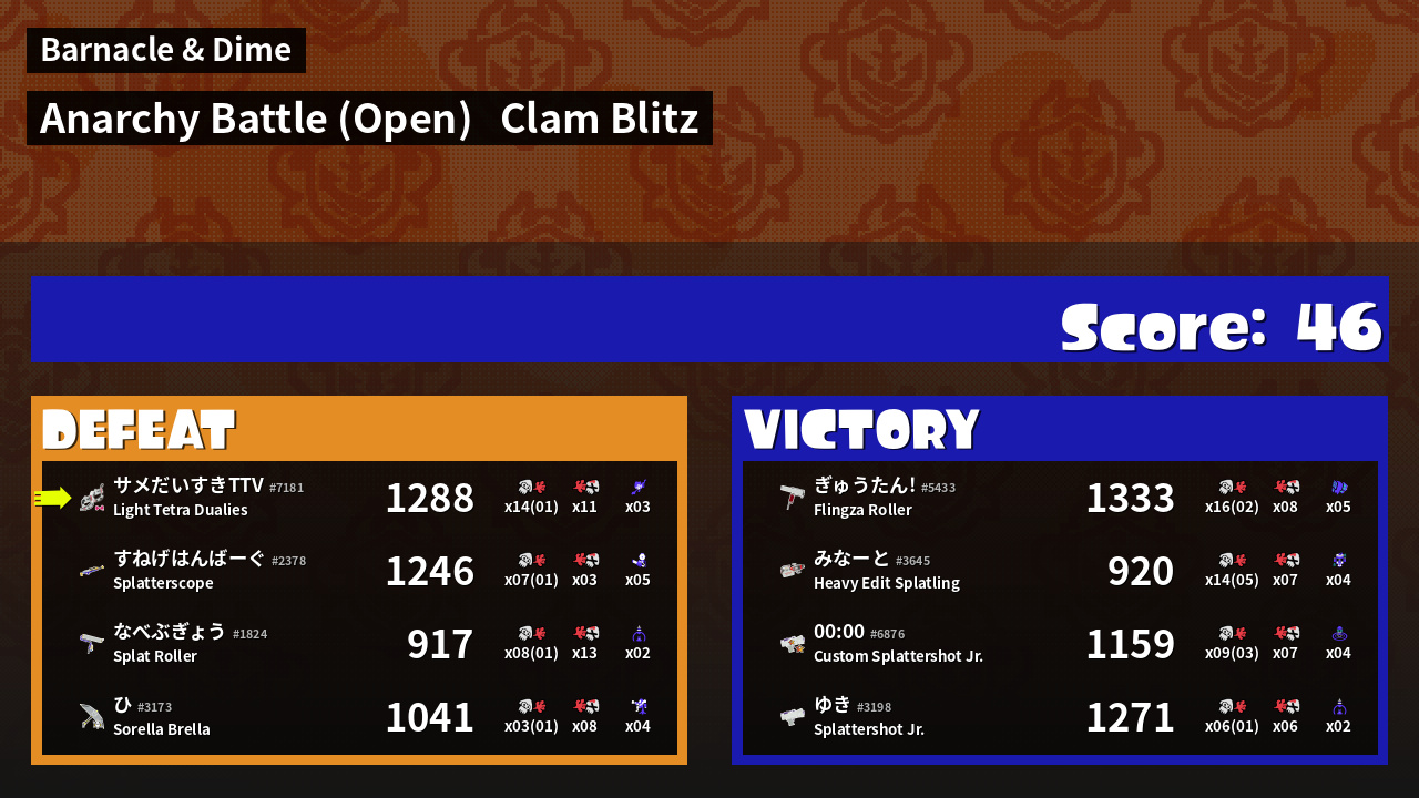 Results of すー's Battle