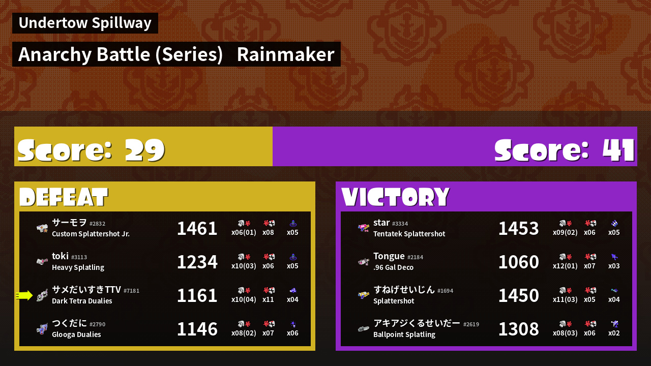 | Medals | #1 Overall Splatter #1 Splat Assister #1 Rainmaker Stopper | ||