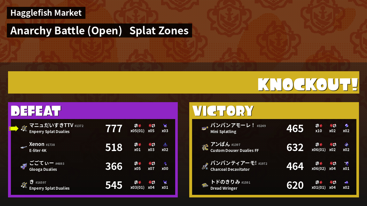 | Mode | Splat Zones - Anarchy Battle (Open) | ||