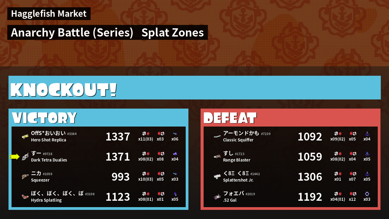 | Mode | Splat Zones - Anarchy Battle (Series) | ||
