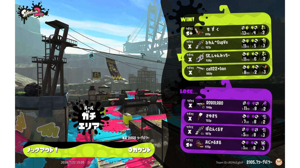 | Mode | Splat Zones - League Battle (Quad) | ||||||||||||||||||||||||||||||||||||||||
