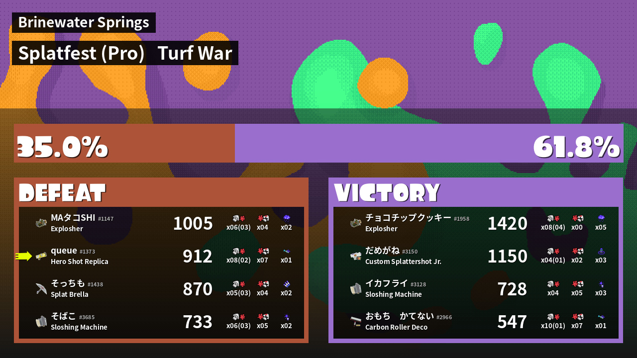| Medals | #1 Overall Splatter #1 Popular Target #1 Home-Base Inker | ||