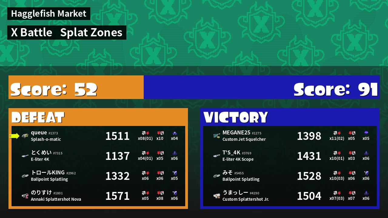 | Medals | #1 Overall Splatter #1 Enemy Splatter #1 Splat Assister | ||