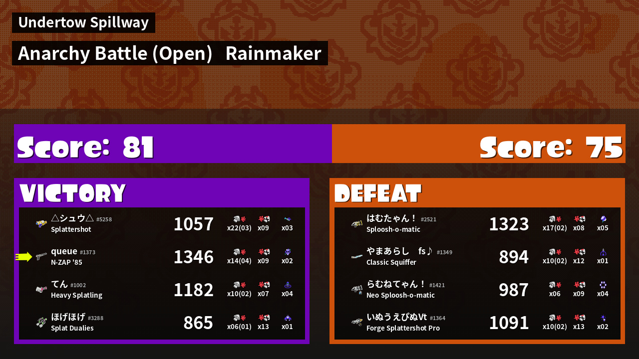 | Mode | Rainmaker - Anarchy Battle (Open) | ||