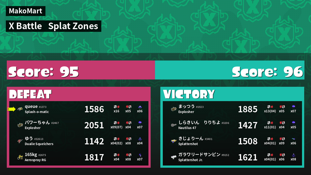 | Mode | Splat Zones - X Battle | ||