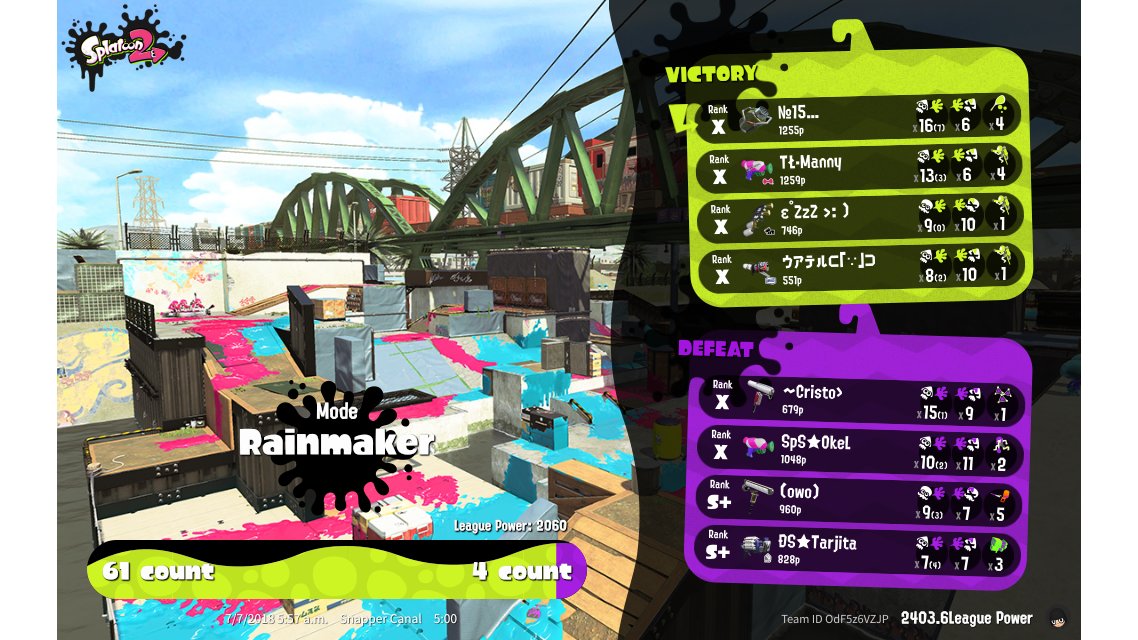 | Mode | Rainmaker - League Battle (Quad) | |||||||||||||||||||||||||||||||||||||