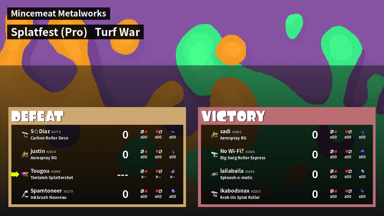 | Weapon | Tentatek Splattershot ( Splat Bomb / Triple Inkstrike) | ||
